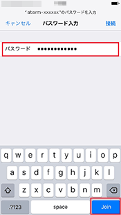 5.「パスワード」に事前準備で確認したAtermの暗号化キーを入力し※、「Join」ボタンをタップします。
