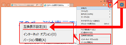 Internet Explorerを使用してクイック設定Webより設定を行う場合は、「互換モード」に切り替えたうえで設定を行ってください。切り替え手順は次の通りです。