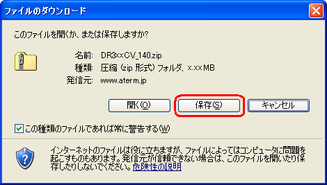 [保存]をクリックして、パソコンの任意のフォルダへダウンロードします。 |