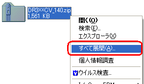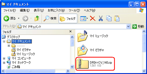 圧縮フォルダ[DR3XXCV_140.zip]が作成されます。 |