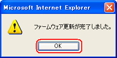 [メニュー一覧]の[メンテナンス]−[ファームウェア更新]画面へ戻ります。 |