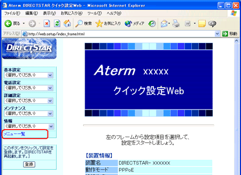 違う設定画面が表示された場合は、Aterm IP電話バージョンアップサポートセンター へお問い合わせください。