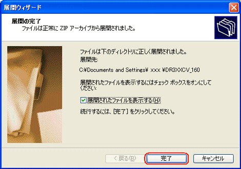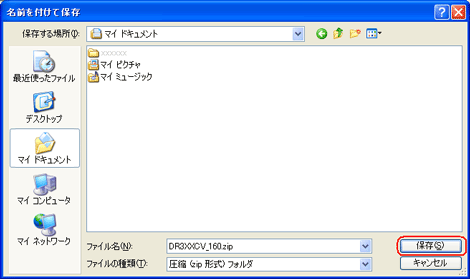 圧縮フォルダ[DR3XXCV_160.zip]が作成されます。