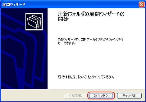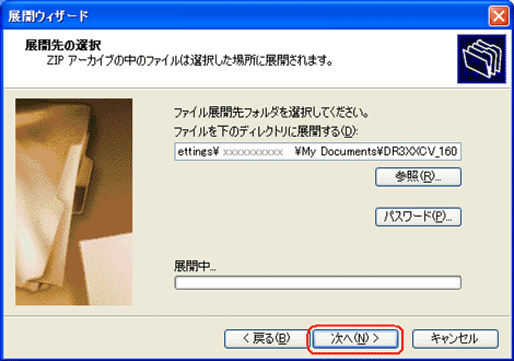 [次へ]をクリックしてください。変更する場合は[参照]をクリックして展開先を選択してください。